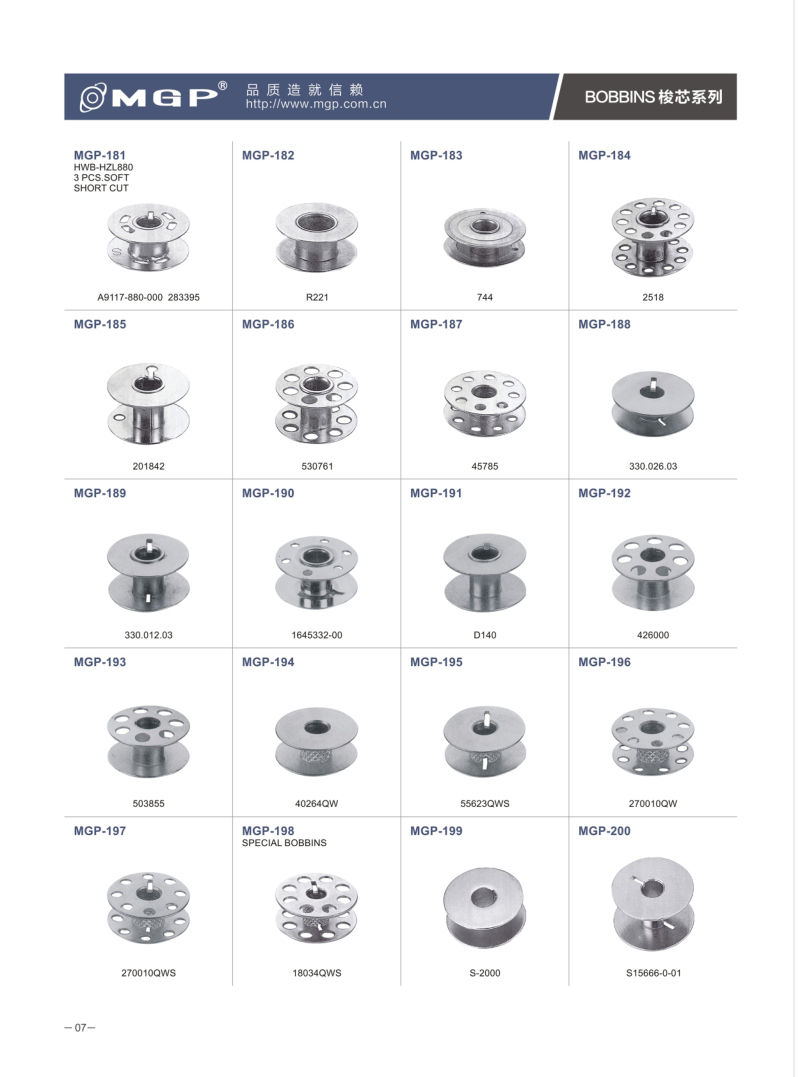 寧波市宏威機械制造有限公司 MGP品牌成立于1990年,總部位于浙江寧波。企業分為浙江寧波、浙江紹興、河北、三大生產基地。全產業鏈自主生產的全產業鏈。是國內較大的梭芯生產基地和縫紉機配件的企業之一。是我國縫配件梭芯、梭殼縫配件出口量較大企業。MGP品牌產品與各大整機公司配套,并銷售80多個地區,深受客戶信賴。